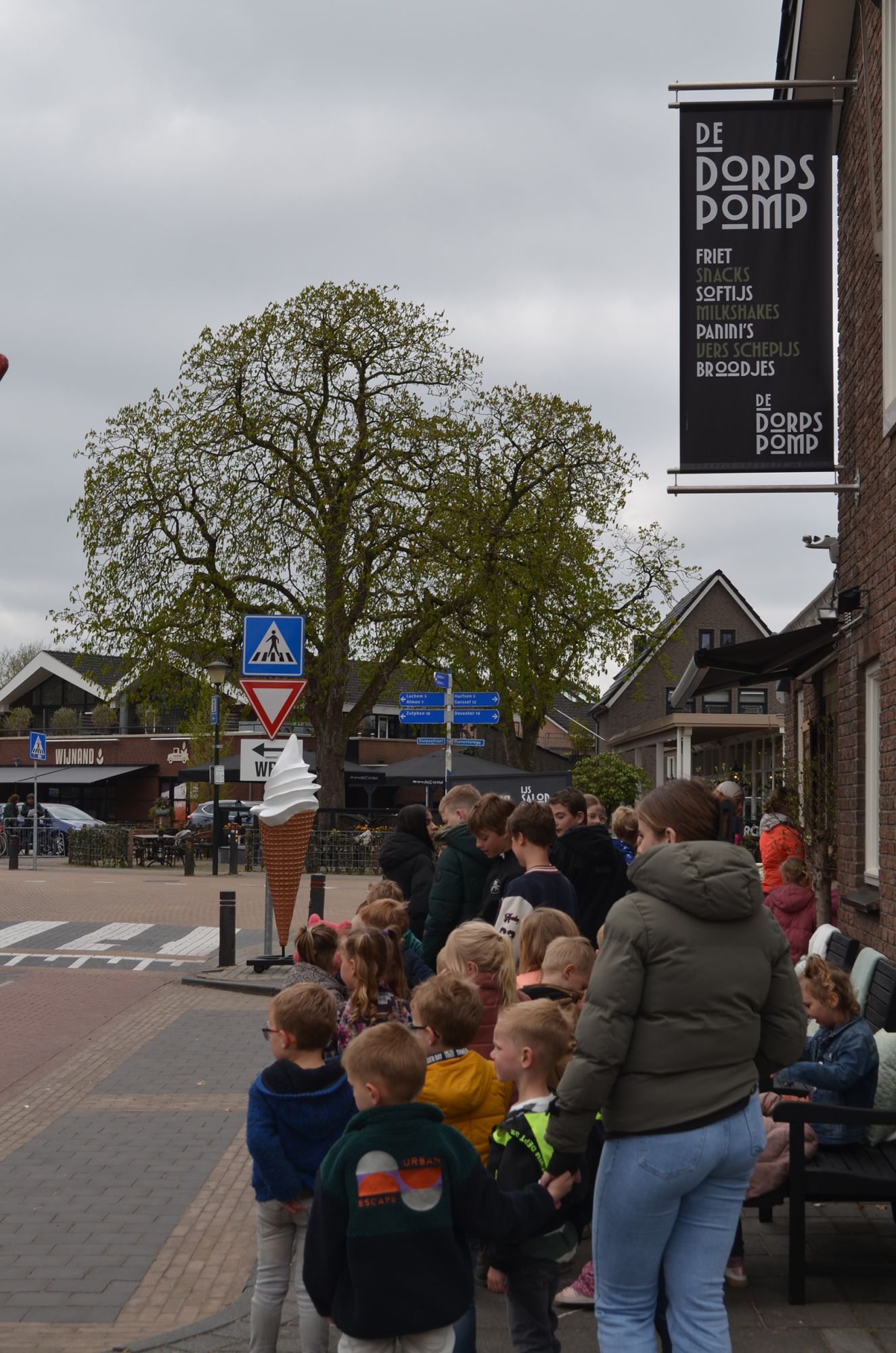 Speciaal voor de opening van de vernieuwde Dorpspomp en ijssalon Dieks nodigde eigenaar Jannes Reurslag alle leerlingen van de basisscholen De Branink en Prins Willem Alexanderschool uit Laren uit voor een lekker softijsje.Donderdagmiddag kwamen de leerlingen gefaseerd, in groepen, lopend naar de snackbar en ijssalon. Veel jongere leerlingen werden begeleid en geholpen door de oudere leerlingen. Daarna konden ze aan de overkant van de straat genieten van hun ijsje. Gelukkig voor de leerkrachten mochten ook zij een lekker ijsje nemen.