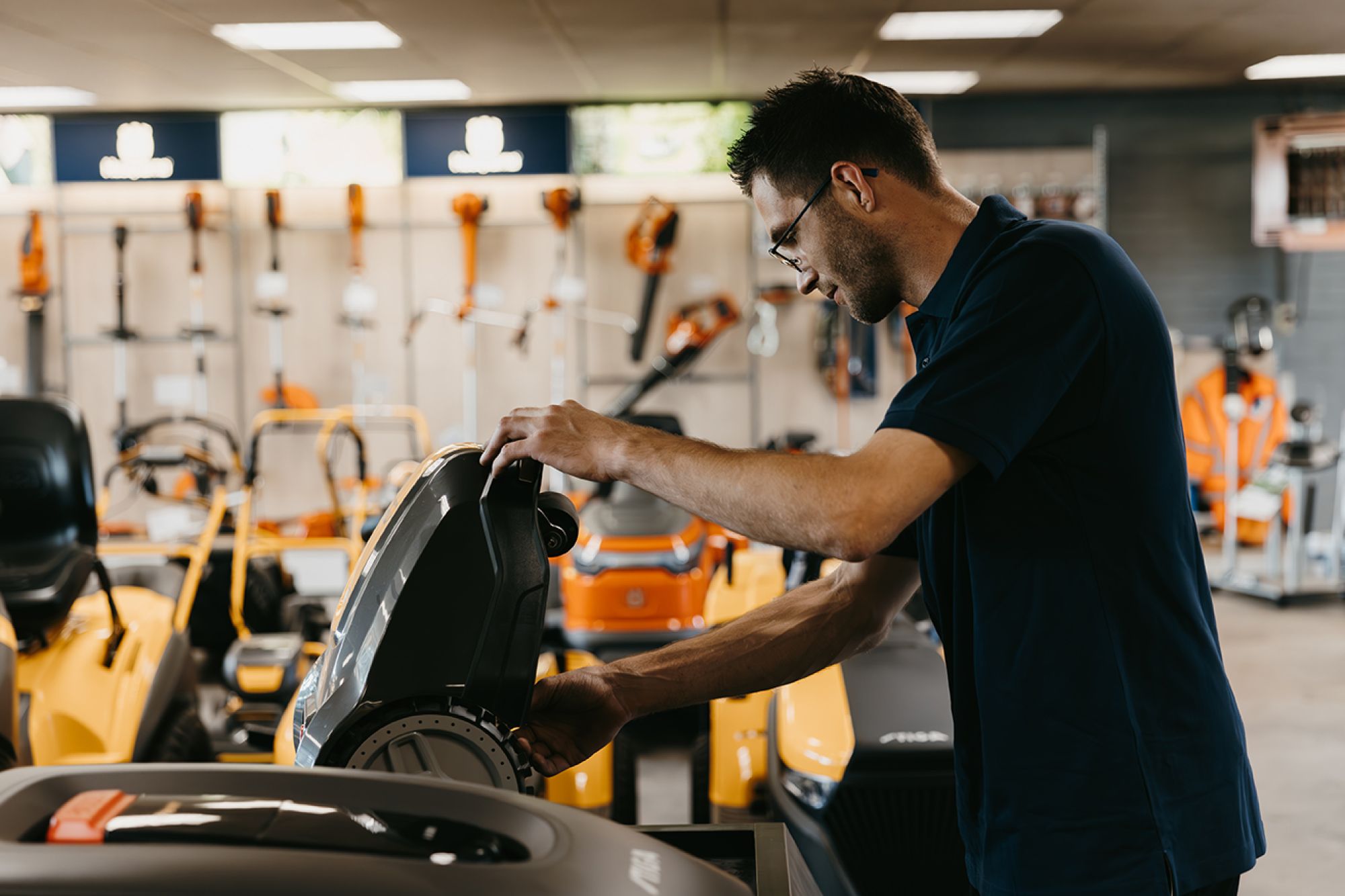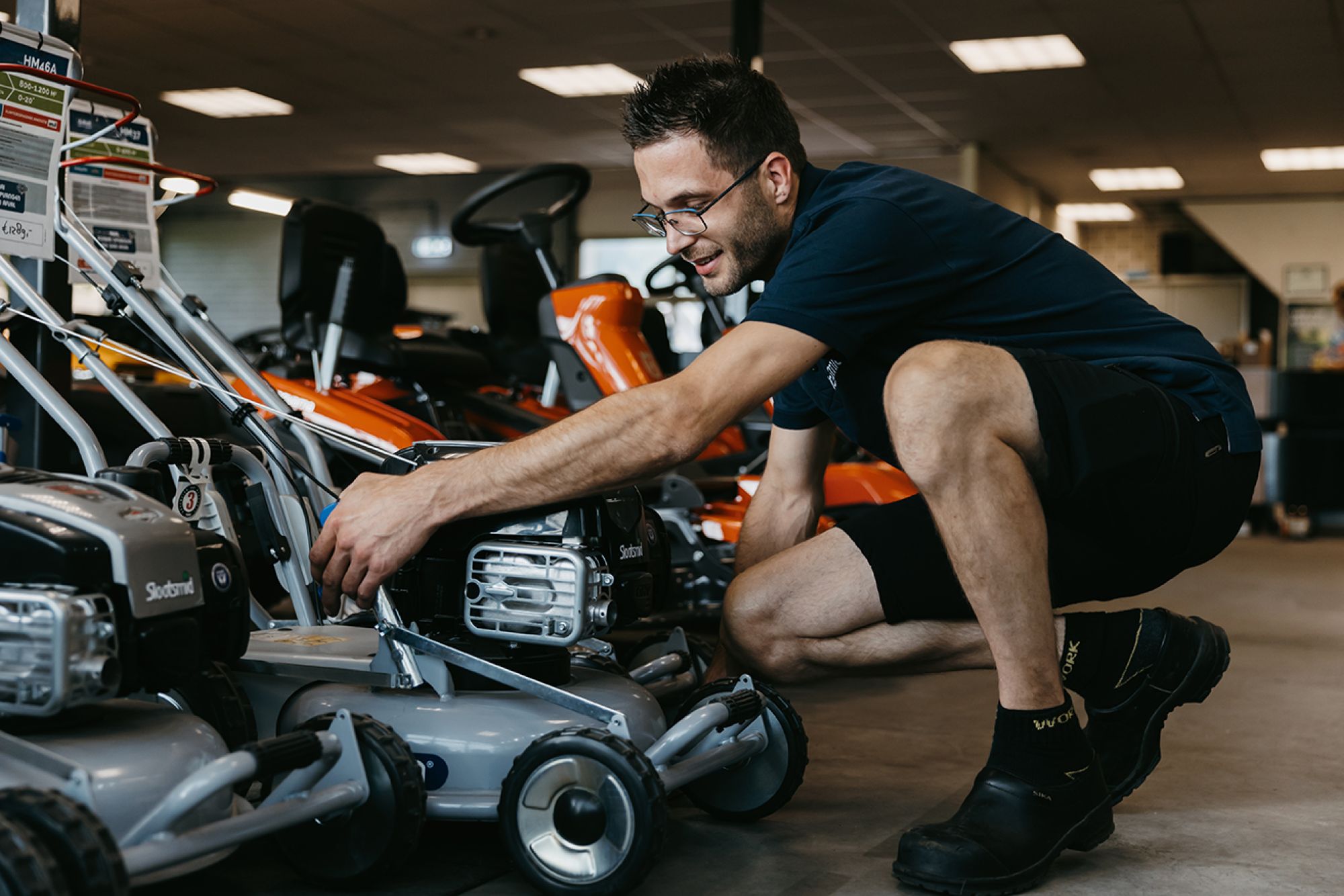 “Deze afdeling is ook ontstaan doordat er een behoefte was vanuit de directe omgeving; zowel vanuit particulieren als professionele hoveniers”, licht André toe. “Ons team is recent uitgebreid en doet alles, van verkoop tot installatie, onderhoud en reparaties. We hebben voor iedere tuin passende producten. Naast de motorzagen en grasmaaiers, zijn er bijvoorbeeld ook robotmaaiers, elektrische zitmaaiers of bladblazers op accu: stil en een stuk beter voor het milieu. Er kan meer dan men zich realiseert. De mensen op onze afdeling weten waar ze over praten en voorzien je graag van advies.”