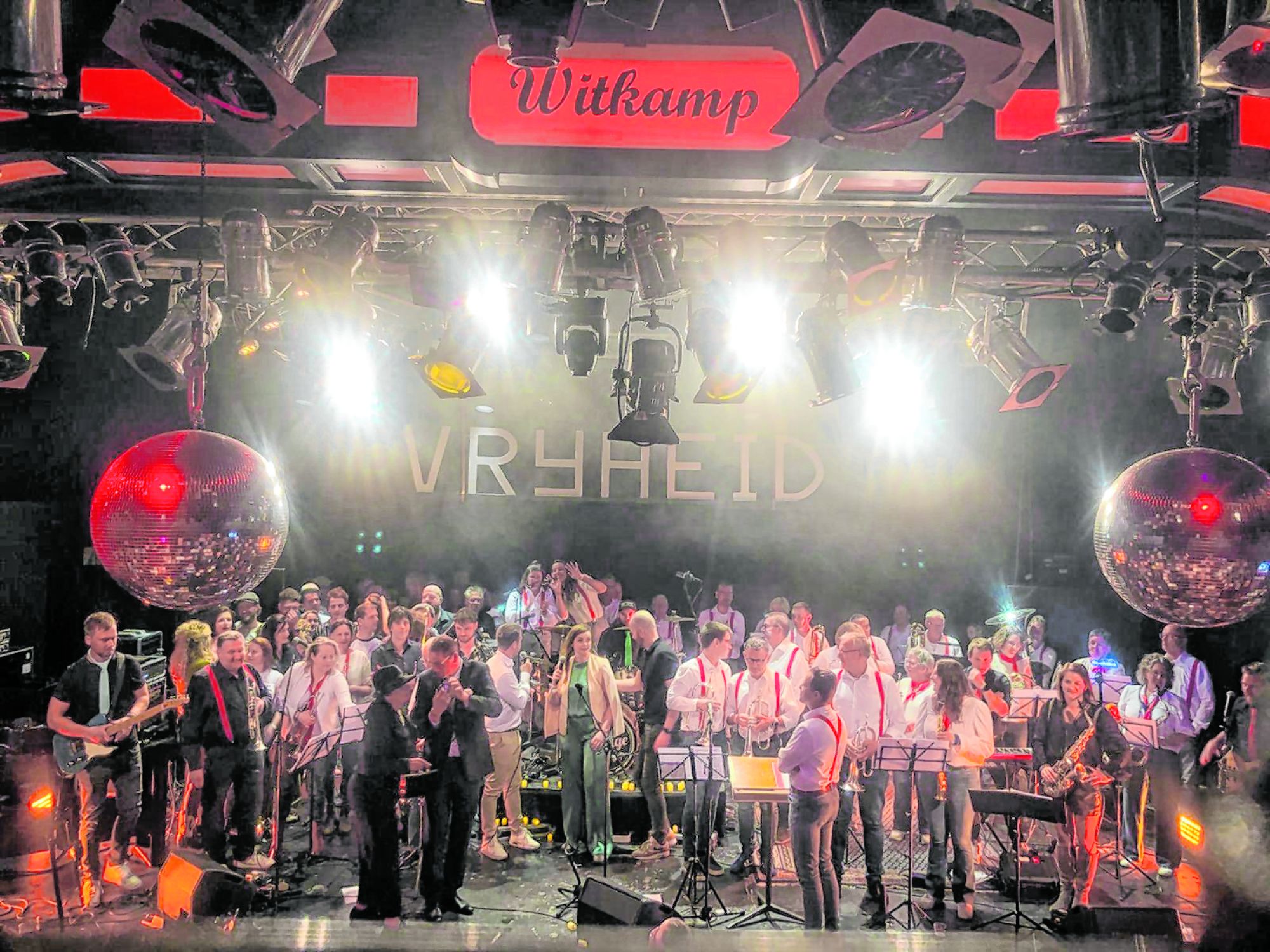 Vanaf het moment dat de deuren van Witkamp opengingen om 14.30 uur, liep de zaal snel vol. Om 15.00 uur begon het programma en op het hoogtepunt stond de zaal bomvol. Het was een gemoedelijk en sfeervol evenement, zonder wanklank. De lokale topmuzikanten, die allen belangeloos deelnamen in het kader van 80 jaar vrijheid, zorgden voor een spectaculaire show, zowel met hun eigen formaties als in verrassende samenstellingen.